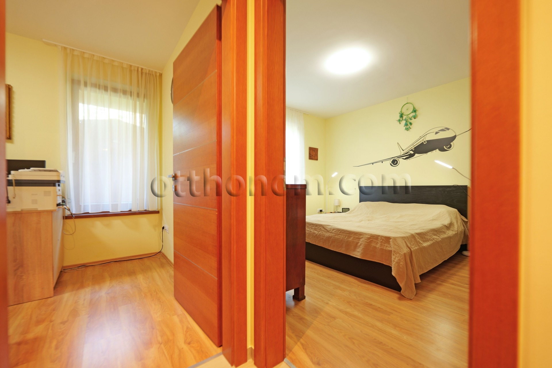 Széphalmon, a II/A. kerület egyik legkedveltebb, kertvárosias részén kínáljuk megvételre ezt a 2021-ben épült, kivételes állapotú ikerházfél jellegű családi otthont, amely ideális választás nagycsaládosoknak vagy többgenerációs együttélésre is. Az ingatlan modern műszaki tartalommal, átgondolt belső elrendezéssel és magas szintű komforttal rendelkezik. A 7.5 kW-os, szaldós elszámolású napelemrendszer a teljes háztartási elektromos energiaigényt fedezi, elektromos autó töltéssel együtt, így a rezsiköltség rendkívül kedvező. A rendszer akkumulátoros energiatároló fogadására elő van készítve, a tároló később – akár állami támogatással – bővíthető, így a megtermelt energia éjszaka is felhasználható.